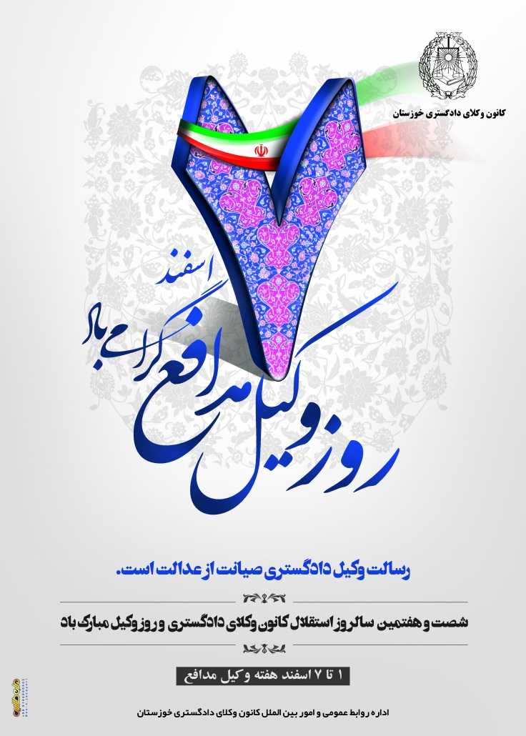 شصت و هفتمین سالروز استقلال کانون وکلای دادگستری و آغاز هفته گرامیداشت وکیل مدافع را حضور جامعه وکلای استان خوزستان تبریک و تهنیت عرض میکنیم.