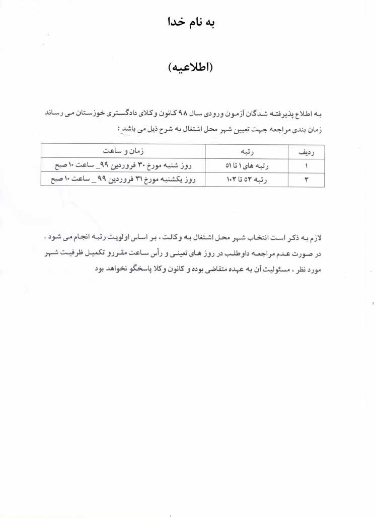 اطلاعیه های کانون اطلاعیه- به اطلاع پذیرفته شدگان آزمون ورودی سال ۹۸ کانون وکلای دادگستری خوزستان… منتشر شده در کانون وکلای دادگستری استان خوزستان ۱۴۰۴/۰۴/۲۳ فعال ۱۳۹۹/۰۱/۲۷ ۰