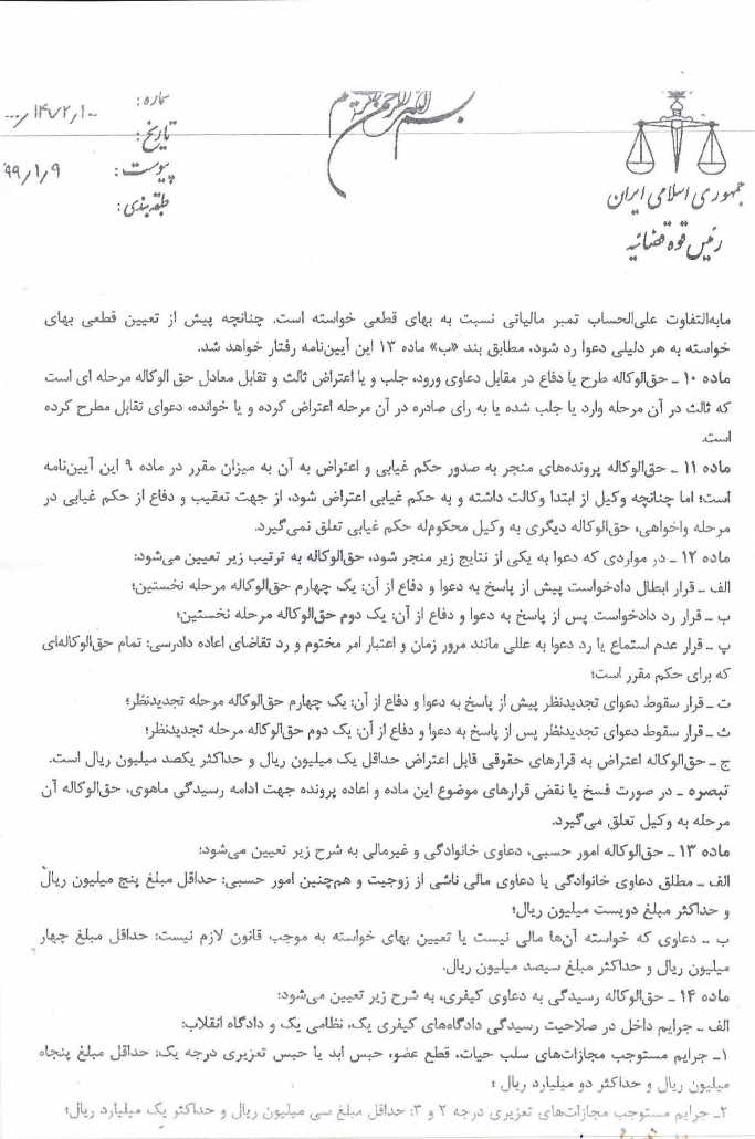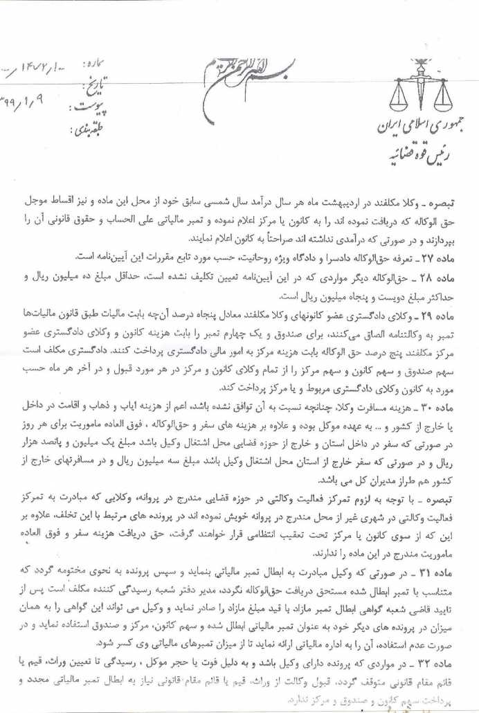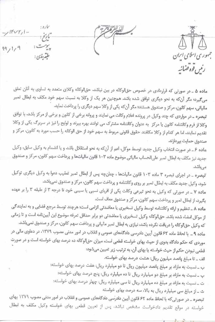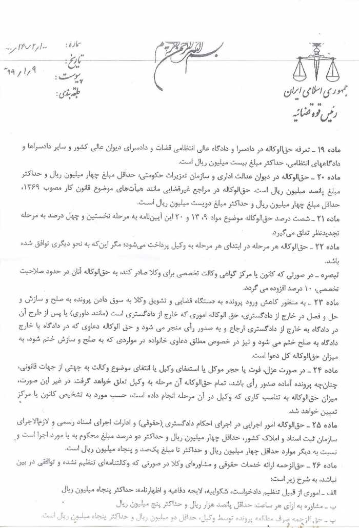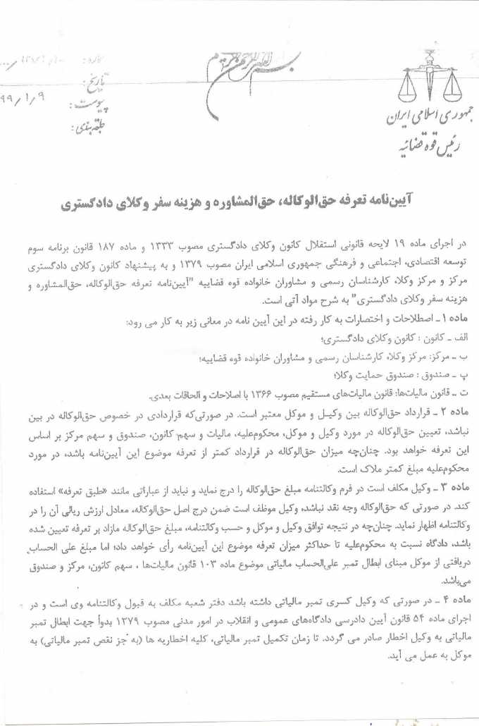 دستهبندی نشده آیین نامه تعرفه حق الوکاله ، حق المشاوره و هزینه سفر وکلای دادگستری منتشر شده در کانون وکلای دادگستری استان خوزستان ۱۳۹۹/۰۲/۰۳ فعال ۱۳۹۹/۰۲/۰۳ ۰