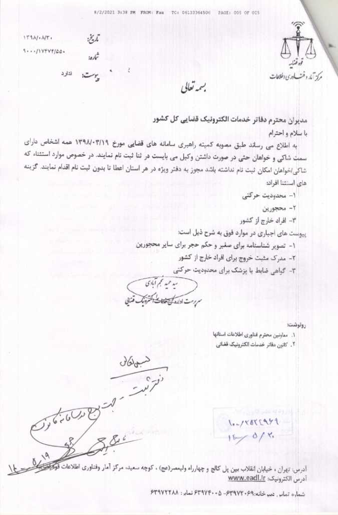 اطلاعیه های کانون اطلاعیه-الزامی بودن ثبت نام ثنای کلیه اشخاص دارای سمت شاکی/خواهان در صورت داشتن وکیل منتشر شده در کانون وکلای دادگستری استان خوزستان ۱۴۰۴/۰۴/۲۳ فعال ۱۴۰۰/۰۵/۲۰ ۰