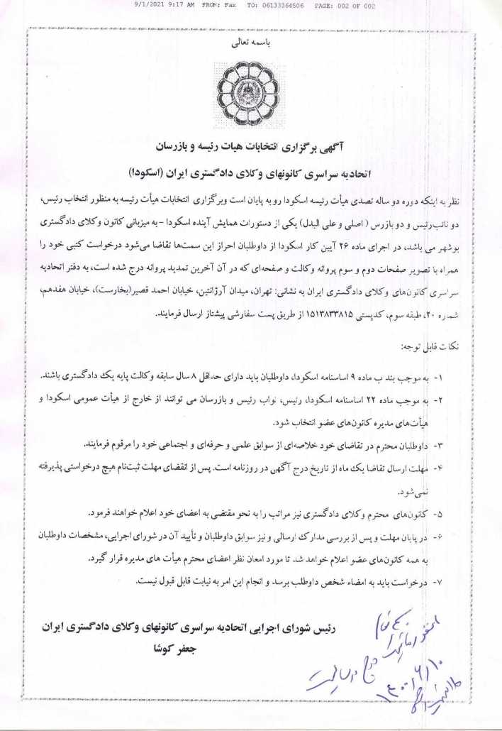 اخبار و اطلاعیه های هیات نظارت بر انتخابات هیات مدیره آگهی برگزاری انتخابات هیات رئیسه و بازرسان- اتحادیه سراسری کانونهای وکلای دادگستری ایران(اسکودا) منتشر شده در کانون وکلای دادگستری استان خوزستان ۱۴۰۴/۰۴/۲۱ فعال ۱۴۰۰/۰۶/۲۷ ۰