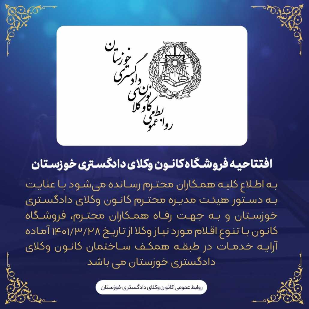 اطلاعیه های کانون اطلاعیه -افتتاحیه فروشگاه کانون وکلای دادگستری خوزستان منتشر شده در کانون وکلای دادگستری استان خوزستان ۱۴۰۴/۰۴/۲۳ فعال ۱۴۰۱/۰۳/۲۷ ۰