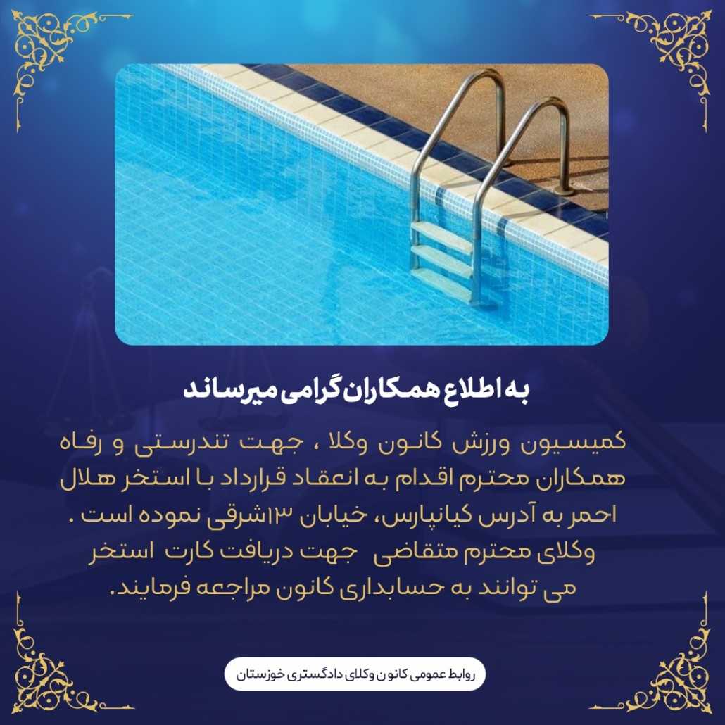 اطلاعیه های کانون اطلاعیه- کمیسیون ورزش کانون وکلای دادگستری خوزستان منتشر شده در کانون وکلای دادگستری استان خوزستان ۱۴۰۴/۰۴/۲۳ فعال ۱۴۰۱/۰۳/۲۷ ۰