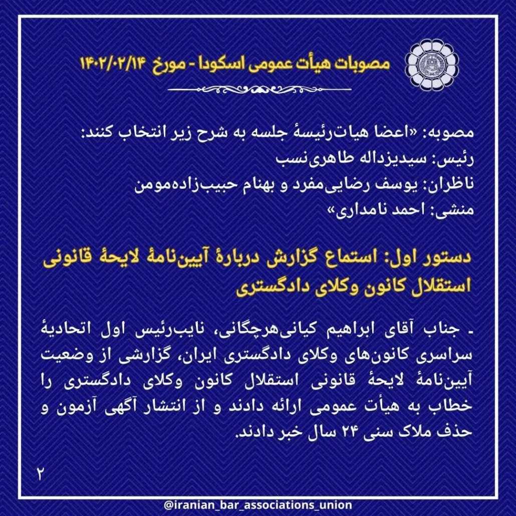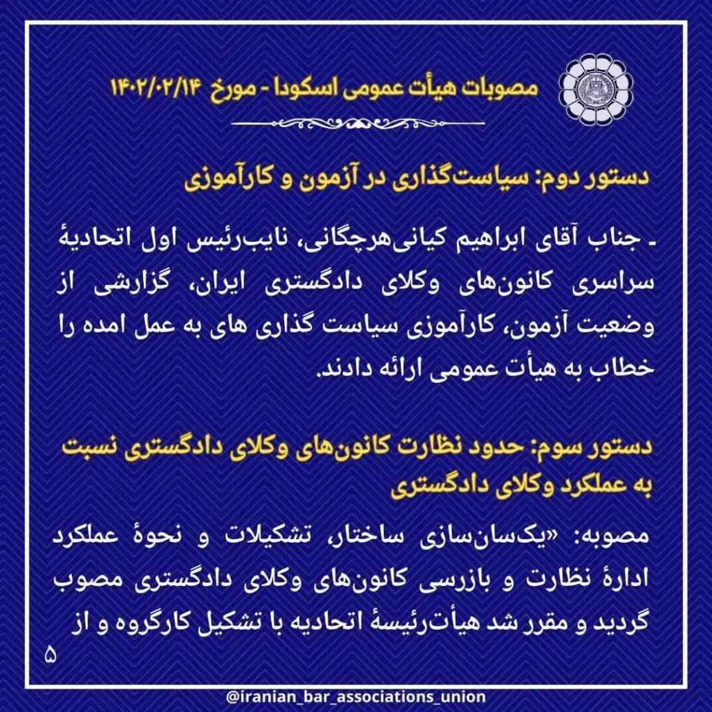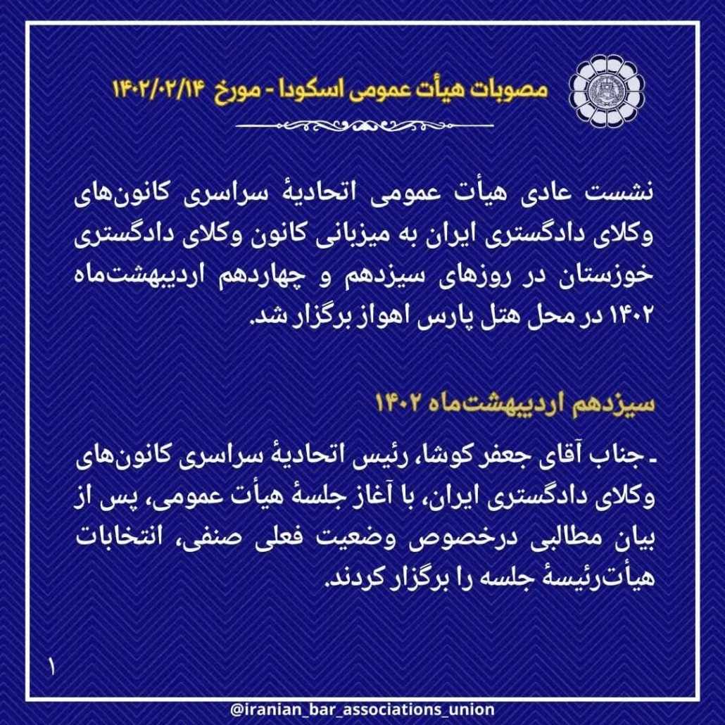 اخبار کانون مصوبات هیات عمومی اتحادیه سراسری کانون های وکلای دادگستری خوزستان منتشر شده در کانون وکلای دادگستری استان خوزستان ۱۴۰۴/۰۴/۲۳ فعال ۱۴۰۲/۰۲/۱۴ ۰