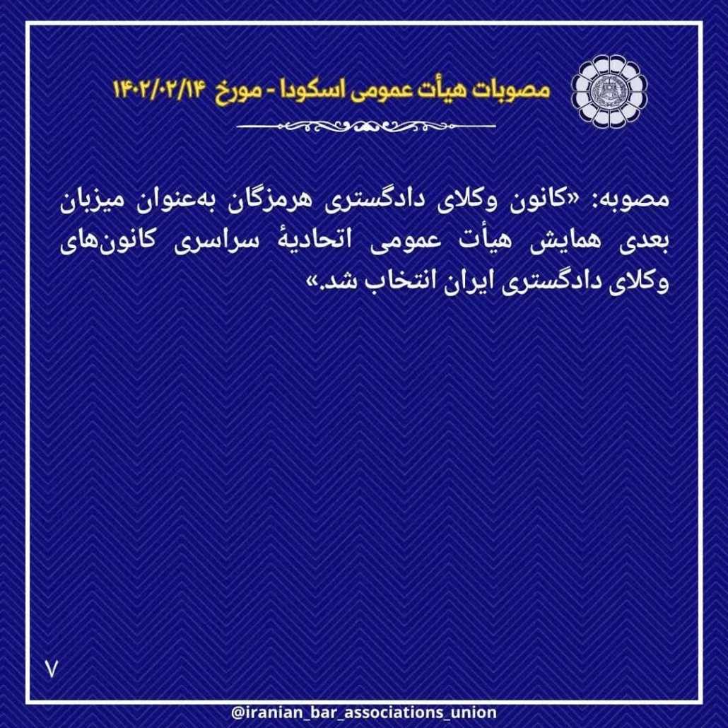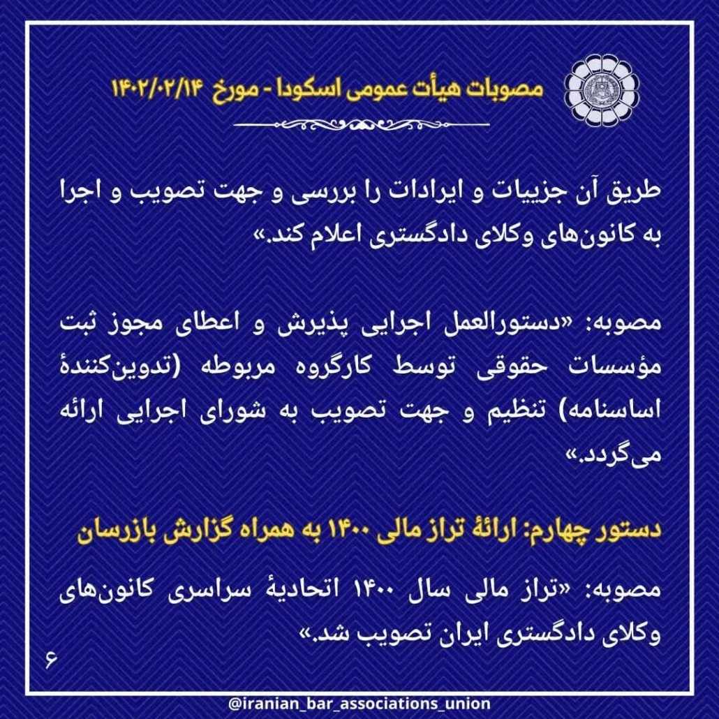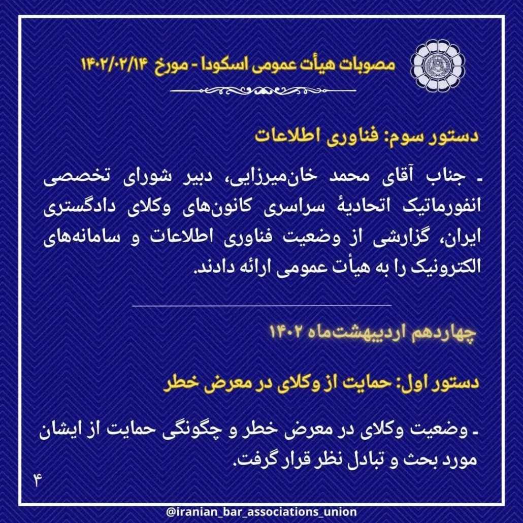 اخبار کانون مصوبات هیات عمومی اتحادیه سراسری کانون های وکلای دادگستری خوزستان منتشر شده در کانون وکلای دادگستری استان خوزستان ۱۴۰۴/۰۴/۲۳ فعال ۱۴۰۲/۰۲/۱۴ ۰