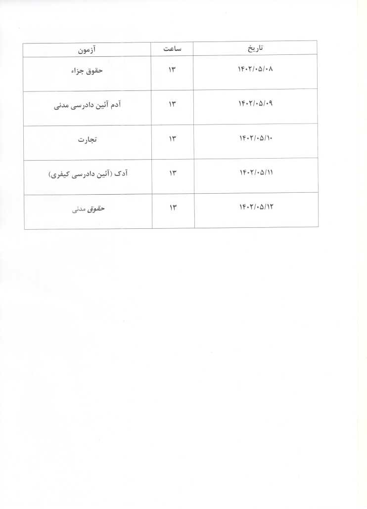 اخبار و اطلاعیه های کمیسیون کارآموزی برنامه امتحانات کارآموزان ورودی ۱۴۰۰ منتشر شده در کانون وکلای دادگستری استان خوزستان ۱۴۰۴/۰۴/۲۳ فعال ۱۴۰۲/۰۴/۲۶ ۰