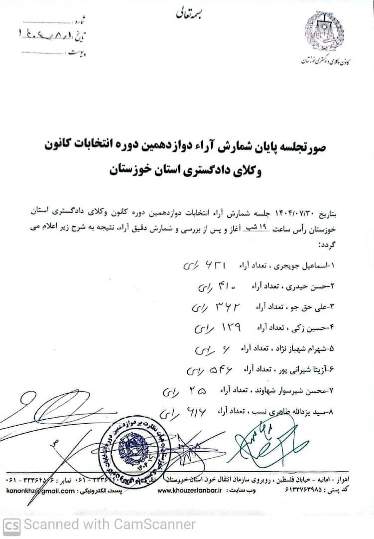 اخبار و اطلاعیه های هیات نظارت بر انتخابات هیات مدیره اعلام نتیجه و شمارش آرای دوازدهمین دوره انتخابات هیات مدیره کانون وکلای دادگستری استان خوزستان منتشر شده در کانون وکلای دادگستری استان خوزستان ۱۴۰۴/۰۸/۰۱ فعال ۱۴۰۴/۰۸/۰۱ ۰